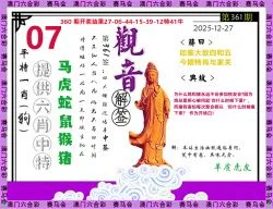 361期开奖时间2025年12月27 星期六)晚9:30开(农历十一月初八 马冲鼠)